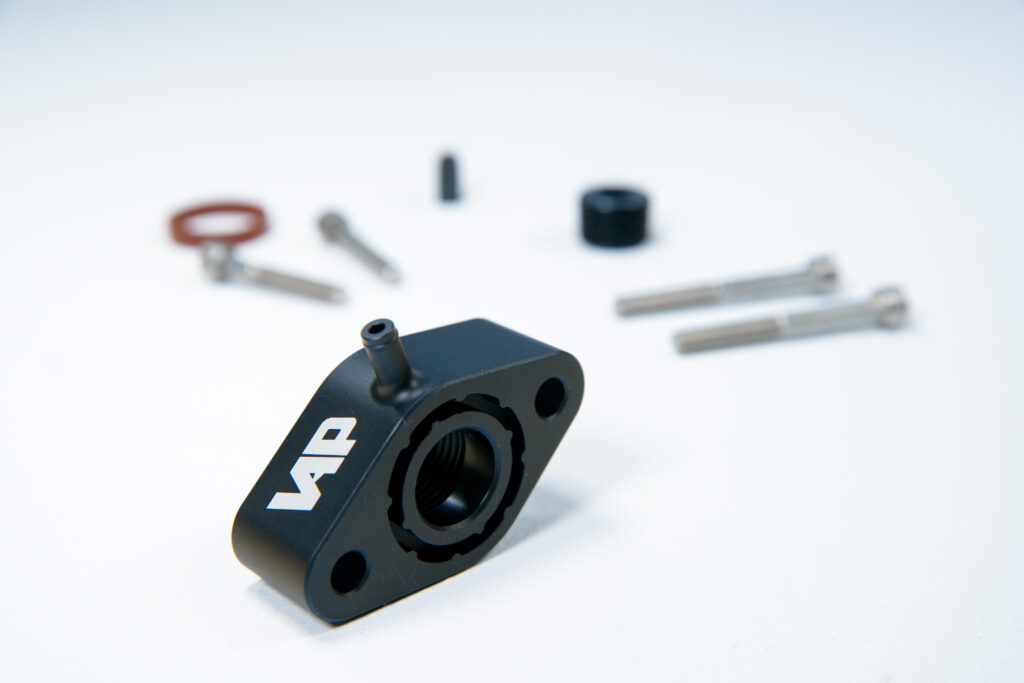 Our kit also features a threaded 1/2″ NPT port for an easy take-off point for boost reference if you want to run an auxiliary boost gauge, or need a take-off point for advanced tuning options like water/methanol injection.